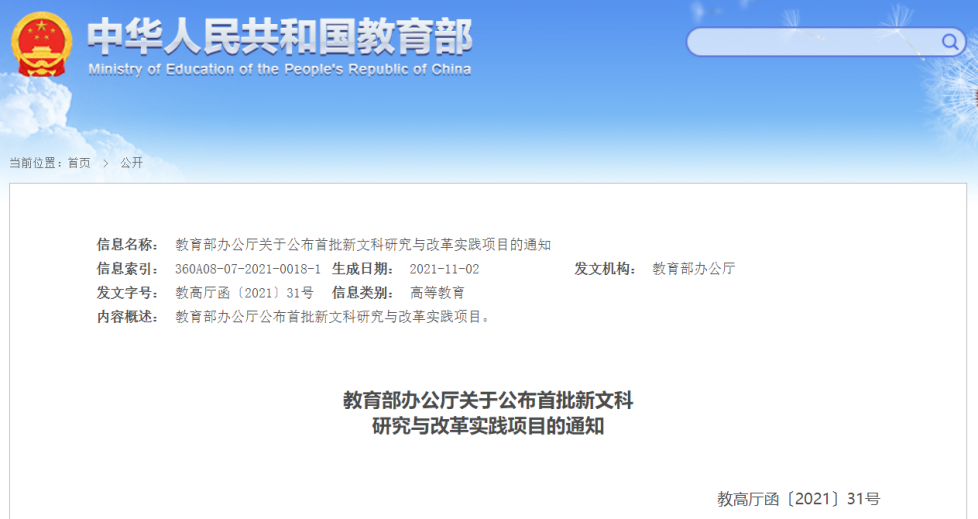 我校在此次国家级、省级新文科研究与改革实践项目立项数量在省内同类院校中位列前茅,立项成果既实现了国家级、省级项目的“全覆盖”和省级重点项目、一般项目、培育项目三个类别的“全覆盖”,还实现了教师教育、文化艺术、经管法政三个文科类专业集群的“全覆盖”。项目立项充分体现了我校的办学优势和特色,同时彰显了师范专业的办学底色,也为“十四五”期间“一基双新”学科专业建设奠定了良好基础。