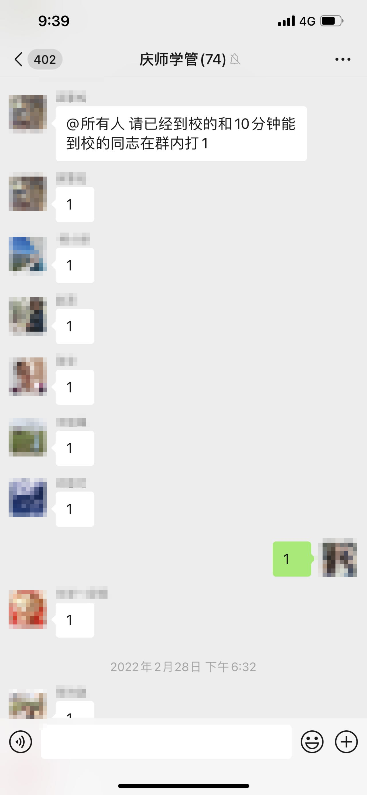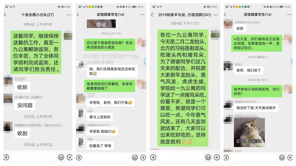 疫情无情人有情。为了做好疫情防控工作,为了保护好学生的利益,学校上下联动,采取有力举措,维护了学校正常的教学秩序、生活秩序,让学生们安心学习和生活。每每一些大的事件发生,对辅导员队伍都是一次检验。事实证明:这是一支召之即来、来之能战、战之能胜的钢铁之师。很多辅导员上有老、下有小,老人、孩子都需要他们照顾,但是他们克服了很多困难,听从了学校的召唤、服从了学生利益,连续奋战在第一线,赢得了师生的赞誉。他们用实际行动诠释了庆师学工人的责任与担当!(撰稿:葛靖 审核:楚丽丽 编辑:姜丰翼 )