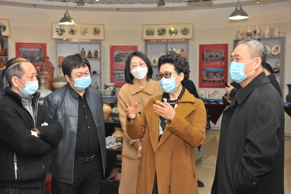 在“工匠人才创新工作室”油陶研究所,袁主席在听取了油陶创始人、“龙江工匠”李方海教授在油陶产生历史、材料创新、制作工艺等方面的详细讲解后,称赞我校油陶无论从品质上、还是理念和核心技术上,都是有思想、有灵魂、有内涵的,希望各方能加大宣传力度,既要高大上,又要接地气,将代表大庆石油文化、地域文化的油陶宣传推广出去,为大庆的对外文化交流、交往作出应有的贡献。