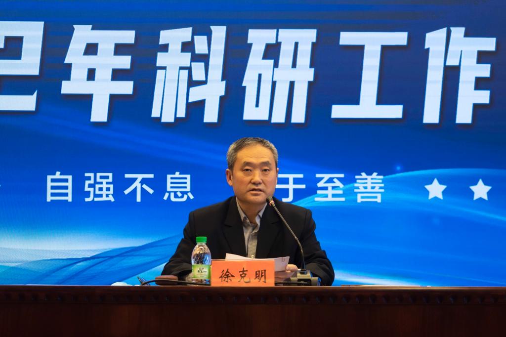会上,副校长王福友做了题为《凝心聚力担当作为努力开创我校科研工作新局面》的科研工作报告,对2020年以来的科研工作进行了全面总结回顾,对今后两年的学科工作、重点科研工作进行了总体规划和部署。过去两年,在学校党委、行政的坚强领导下,我校上下一心、积极进取,科研工作取得了较大成绩:基础建设层面,学校三年过渡期实现了科研服务面向与办学定位的并轨,内嵌于学校综合改革的科研奖励和约束机制初步形成;有效实施层面,相当部分的科研方向和团队已具规模和竞争优势;成果显现层面,高水平科研立项和突破性科研获奖标志着平台上科研成果不断涌现。今后两年,学校科研工作要深入学习贯彻党的十九届六中全会和即将召开的党的二十大精神,按照省委省政府“能力作风建设年”的要求,落实《深化新时代教育评价改革总体方案》等文件精神,着力提升校院两级科研组织动员的服务能力,激发科研人员内生动力,推动科研工作在“明晰功能、明定机制、明确载体、明显质效”上取得新突破。