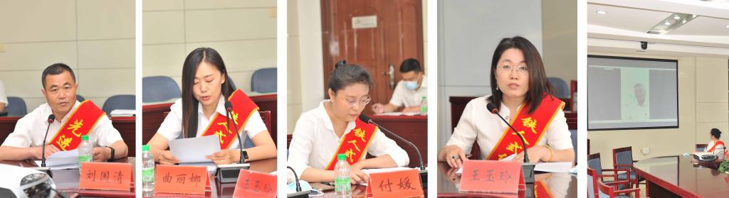先进党组织、铁人式优秀党务工作者、铁人式优秀共产党员代表代表刘国清、曲丽娜、付媛、王玉玲、沈天磊五位同志结合自身实际,分别从强化党组织政治功能、促进党建与业务工作深度融合、教书育人、带头推进课程思政建设、潜心教学科研、助力乡村振兴等方面进行座谈交流。