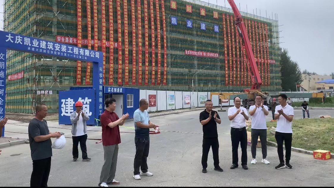 7月4日上午,我校新建学生第十一号公寓项目主体结构封顶仪式在项目现场举行。校长乔志和、后勤管理处相关工作人员以及施工单位、监理单位代表出席了封顶仪式,共同见证学生第十一号公寓项目的阶段性成果。