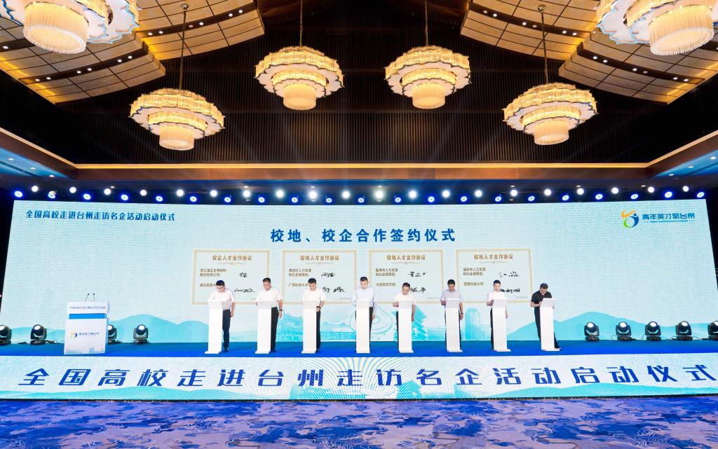 在浙江省台州市考察期间,考察队参加了台州市举办的“百所高校走进台州走访名企”活动,张平副校长代表学校与台州市人民政府签订校地人才合作协议,学校和台州市政府将在人才培养、科研成果转化、实习就业基地共建等方面加强合作;在校企供需洽谈会上与浙江朗华制药有限公司、利民实业集团有限公司等多家企业交流对接。考察队应临海市人社局邀请走访台州市经济开发区,实地考察了伟星集团有限公司、浙江永太科技股份有限公司、浙江华海药业股份有限公司等上市公司。