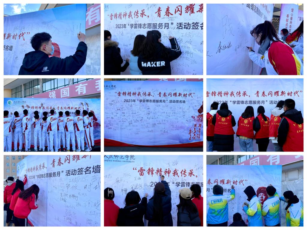 各学院志愿者代表也在签名墙上许下“向雷锋同志学习”的承诺,并纷纷表示要争做新时代雷锋,让雷锋精神在校园传承不息、绽放光芒。