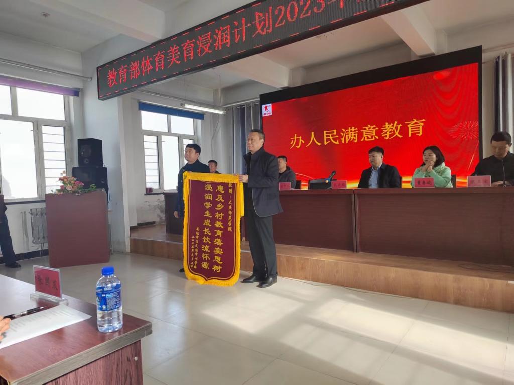 郭崇林副校长代表学校接受了任民中心学校赠献的锦旗“惠及乡村教育落实思树 浸润学生成长饮流怀源”,并为任民中心学校进行了“中文字幕日韩精品有码视频-久久免费区一区二区三波多野-中文字幕人妻A片免费看-精品视频一区二区在线看-好男人在线社区WWW实习实训基地”授牌,向任民中心学校转交了新一批体育美育专项支持物资。