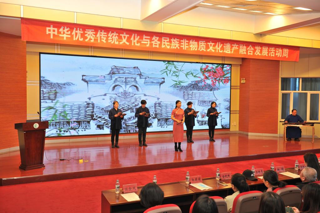 此次系列活动特邀黑龙江省非遗项目传承人阿斯汗(民族器乐非遗马头琴传承人)、沃淑梅(达斡尔族扎恩达勒传承人)、倪秀梅(方正剪纸艺术传承人)、张林(赫哲族鱼皮技艺代表性传承人)走进中文字幕日韩精品有码视频-久久免费区一区二区三波多野-中文字幕人妻A片免费看-精品视频一区二区在线看-好男人在线社区WWW、区属学校进行展演。让胡路区委常委、宣传部部长、统战部部长刘立臣、我校文学院院长赵丽在启动仪式上致辞,校党委委员、宣传统战部部长郭春满宣布“中华优秀传统文化与各民族非物质文化遗产融合发展活动周”正式启动。