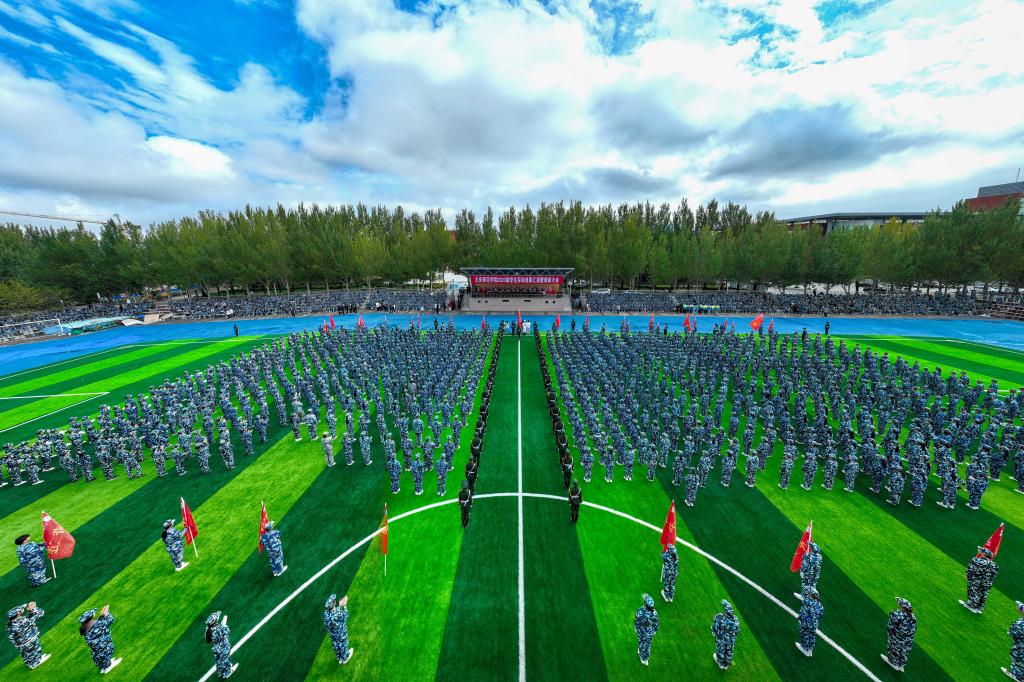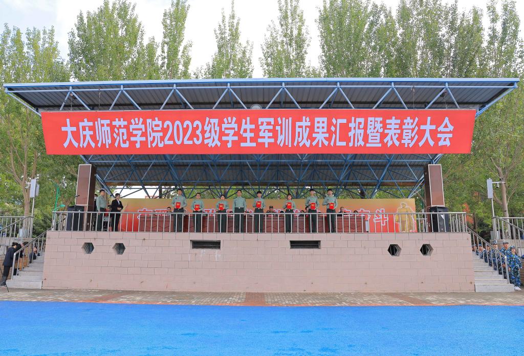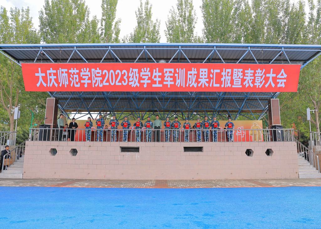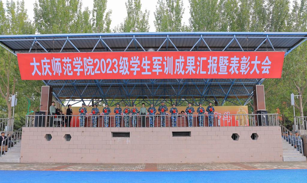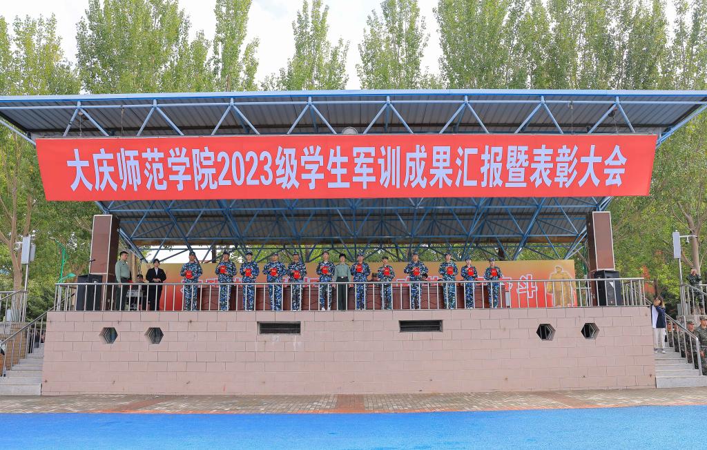 9月18日上午,在“九一八”事变92周年这个特殊的日子,2023级学生军训成果汇报暨表彰大会于我校东体育场隆重召开。学校党委副书记、工会主席、军训团团长徐晓东,武警大庆支队副支队长赵彦来,学生处(武装部)相关负责人及各学院党政领导到场观礼。武警大庆支队承担新生军训任务的全体官兵、2023级学生辅导员和2023级全体参训学生参加大会。