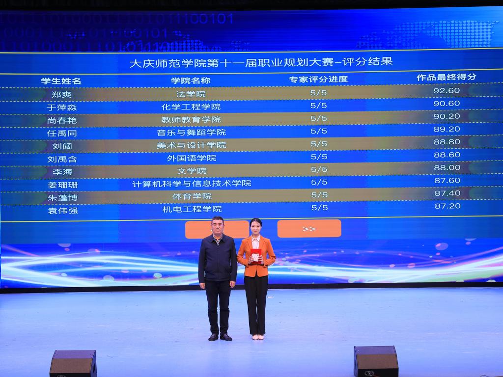 随着决赛结束,第十一届大学生职业规划大赛圆满落下帷幕。接下来,学校将组织一等奖、二等奖获得者代表学校参加黑龙江省大学生职业规划大赛。(撰稿:吴广涛 审核:张涛 编辑:姜丰翼)