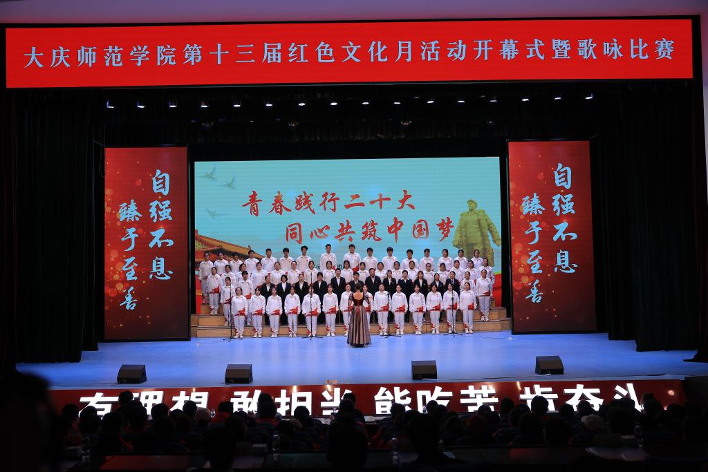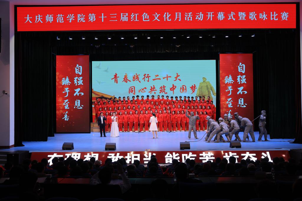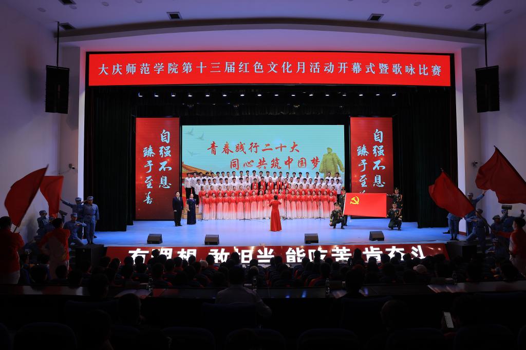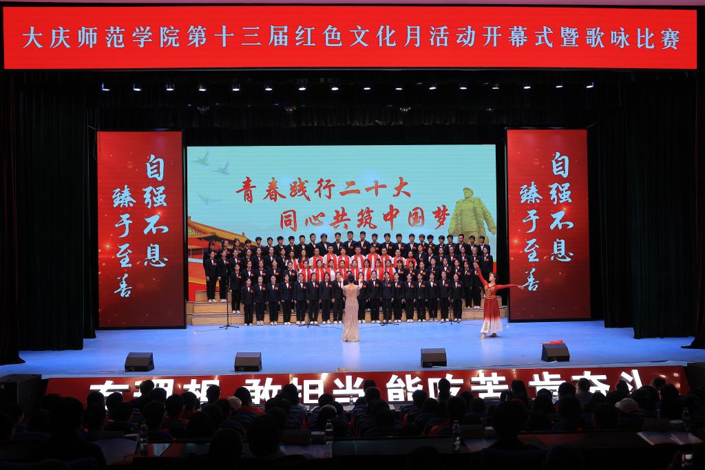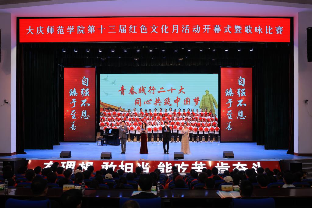 全校共13个学院的师生参加演出,开幕式在教师教育学院《最美的教育》《跟着共产党走》的歌声中拉开帷幕,师生们用深情的演唱表达了对党、对祖国、对教育事业的热爱;计算机科学与信息技术学院演唱的《我们的队伍永远强》《没有共产党就没有新中国》唱出了坚定的理想和信念;法学院的《我和我的祖国》《铁人还在我们行列》抒发了对铁人的崇敬之情;经济管理学院的《强军战歌》《国家》唱出了对祖国的美好祝福。
