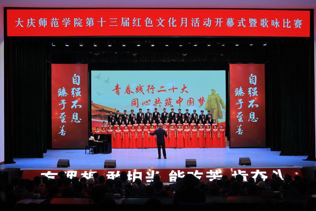 数学科学学院演唱的《踏着铁人脚步走》《我们的队伍向太阳》更加坚定了同学们的爱国爱党之情、忠国报国之志;生物工程学院的《我为祖国献石油》《当那一天来临》唱出了一代石油人奉献祖国、谱写时代新篇章的豪情壮志;机电工程学院的《我们走在大路上》《歌唱祖国》唱出了庆师青年对祖国的热爱;外国语学院的《祖国不会忘记》《今天是你的生日》歌颂了祖国繁荣昌盛。