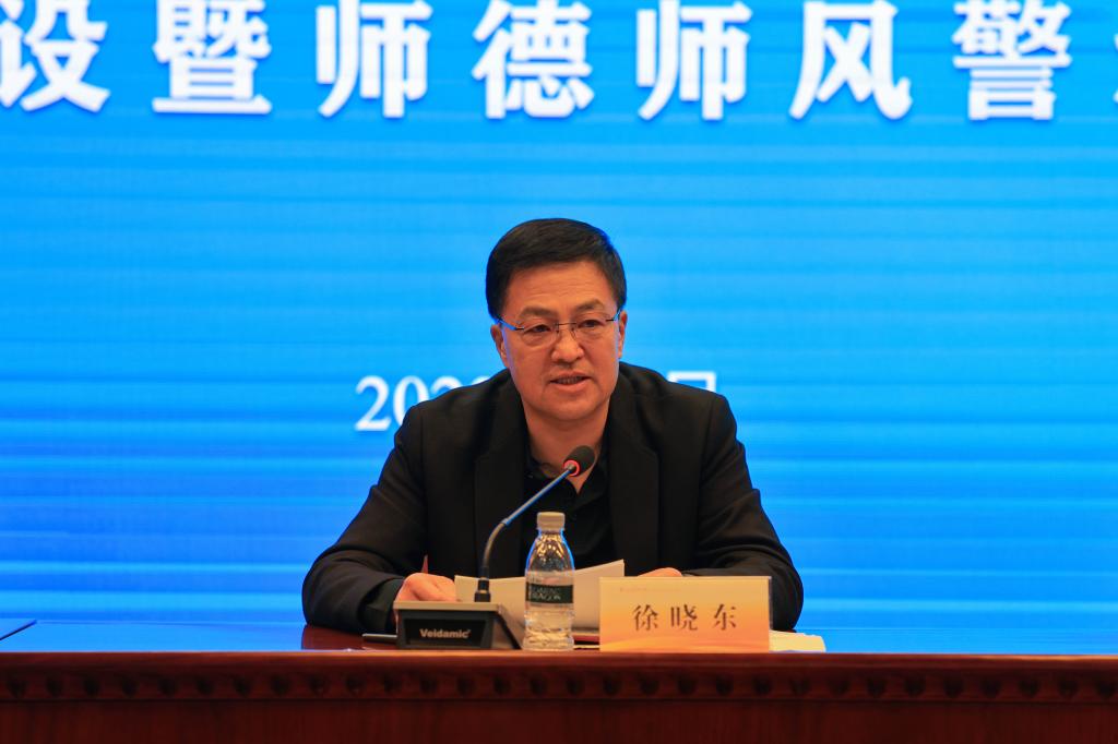 党委副书记徐晓东对加强党风廉政建设和师德师风建设提出了具体要求,他强调认识上要有高度。广大教师要大力弘扬教育家精神,强化使命担当,牢记为党育人、为国育才的责任与使命,做庆师“四有”好老师,做庆师的“大先生”,努力做“经师”和“人师”的统一者。学识上要有厚度。好老师不能满足于装满自己的“一桶水”,而要使自己时时有“活水”,做到博学多才,与时俱进,不断汲取新知识,更新自己的知识结构,积极回应新的挑战。育人上要有温度。教师必须以德立身、以德立学、以德施教,要有言为士则、行为世范的自觉,时时处处做学生的示范和榜样,帮助学生自我教育、自我完善,努力成为学生的好朋友和知心人。执纪上要有力度。相关部门要严守师德底线,以典型案例为指导,及时发现苗头性、倾向性问题,抓早抓小,防微杜渐,教育引导广大教师以案为鉴、引以为戒,共同维护风清气正的育人环境。