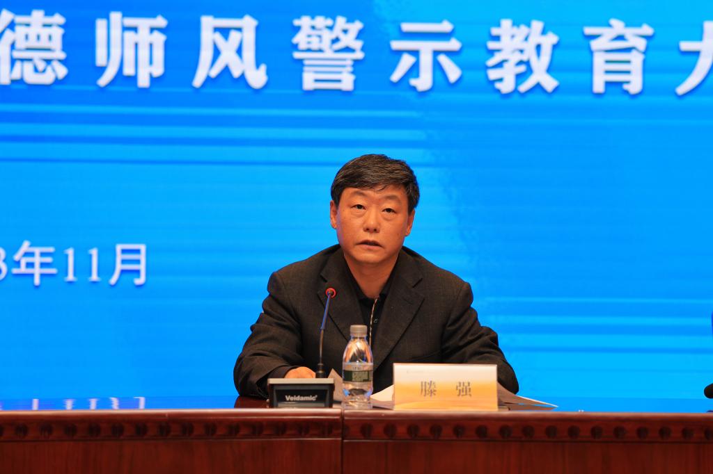 11月1日,我校在图书馆博雅讲堂召开了党风廉政建设暨师德师风警示教育大会。学校领导班子成员出席会议,会议由党委副书记滕强主持。