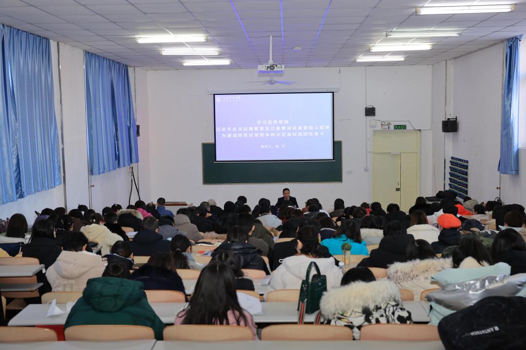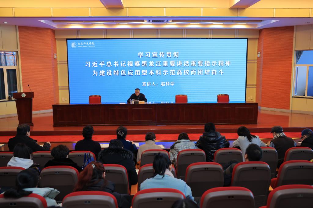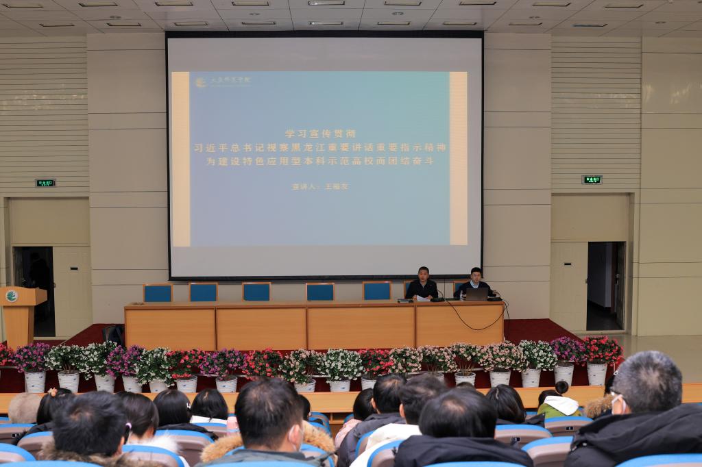 宣讲会上,各位校领导以“学习宣传贯彻习近平总书记视察黑龙江期间重要讲话重要指示精神,建设黑龙江省特色应用型本科示范高校而团结奋斗”为题,紧紧围绕“深刻认识习近平总书记视察黑龙江、擘画新时代新征程全面振兴宏伟蓝图的重大里程碑意义,坚定不移沿着总书记指引的方向勇毅前行”“深刻领会习近平总书记重要讲话重要指示的丰富内涵和实践要求,切实肩负起新时代新征程龙江振兴发展的使命任务”“坚决贯彻落实习近平总书记重要讲话重要指示精神,推动龙江振兴发展取得新突破”“学习贯彻习近平总书记重要讲话重要指示精神,奋力开创我校高质量发展新局面”四个方面,对习近平总书记视察黑龙江省期间的重要讲话重要指示精神进行了系统阐释和权威解读,立意深远、脉络清晰。