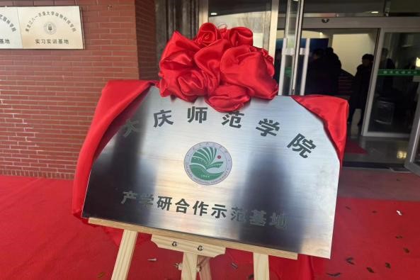 签约仪式后,副校长张平与让胡路区副区长王红喜共同为产学研合作基地进行揭牌。