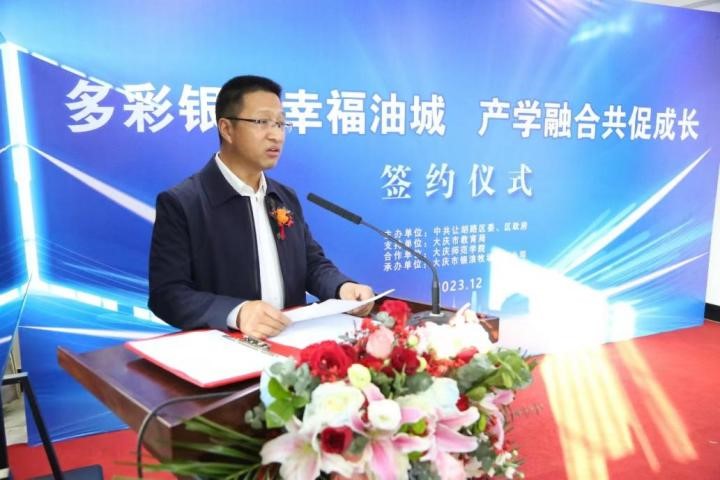 随后,我校教务处处长张国发与大庆银浪牧场有限公司党委书记、总经理孔令辉在参会领导的见证下,共同签署了共建产学研合作示范基地协议。