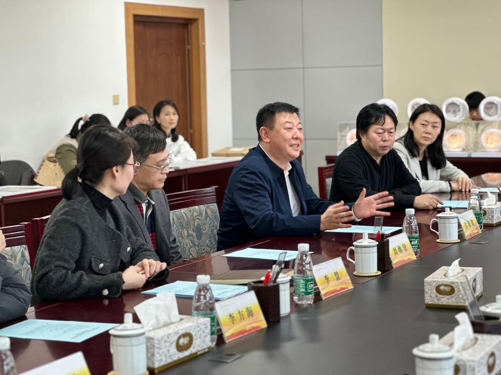 副校长许双毅同与会嘉宾就学校在冰雪雕、文创产品的研发等方面的合作进行了深入的研讨,并在项目具体推进实施方面达成了很多意向性的成果。