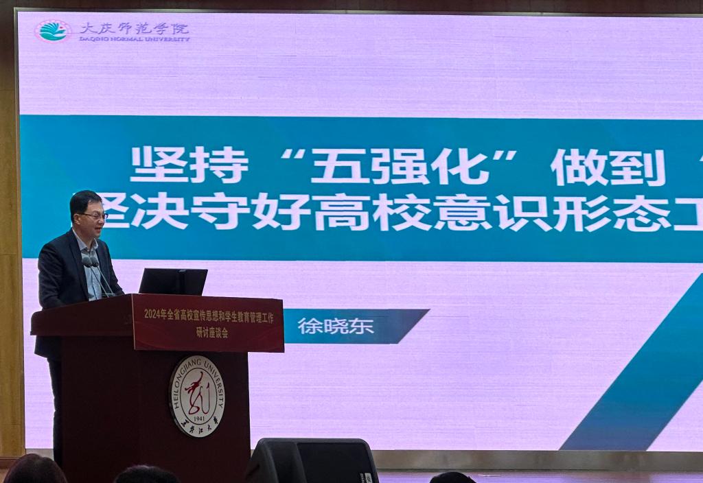 日前,2024年全省高校宣传思想和学生教育管理工作研讨座谈会在黑龙江大学主楼报告厅举行。省委教育工委副书记、省教育厅副厅长雒文虎出席会议并讲话,各高校分管宣传思想和学生工作校领导,省教育厅思想政治教育处、高校学生处相关同志参加会议。