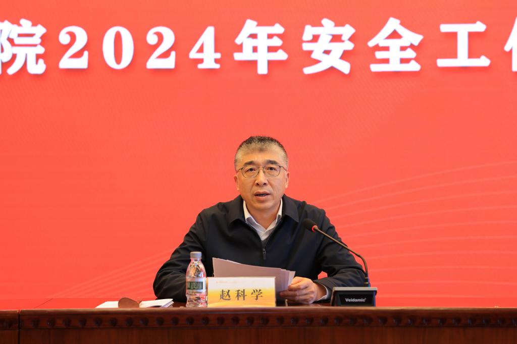 赵科学在讲话中肯定了学校2023年的安全工作。对部署2024年校园安全稳定工作,提出了三点意见:一是提高政治站位,强化责任担当,切实增强做好校园安全稳定工作的责任感。充分认识做好学校安全稳定工作的极端重要性,树牢安全发展理念,及时分析研判形势;二是加强组织领导,压实责任链条,着力构建全方位的安全责任体系。要加强顶层设计和整体统筹,织密安全责任网络,压实全员安全责任;三是围绕中心工作,聚焦重点任务,坚决杜绝各类校园安全稳定事件的发生,坚决维护国家政治安全,压紧压实意识形态工作责任,抓实抓牢校园安全。
