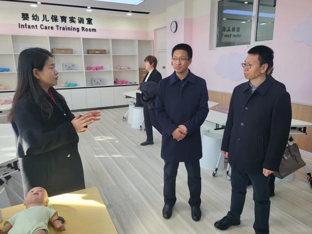 王辉一行参观了实训室并听取了教师教育学院在办学历史、人才培养、服务基础教育等方面的基本情况。双方就人才招聘、实习就业基地建设等事项进行了座谈交流。