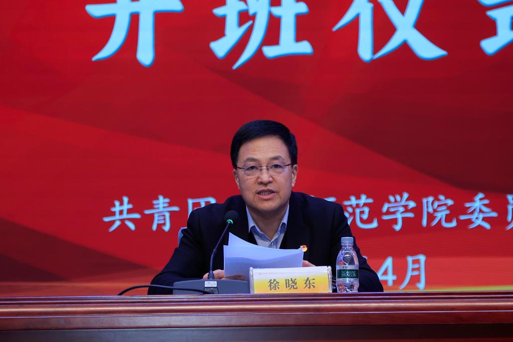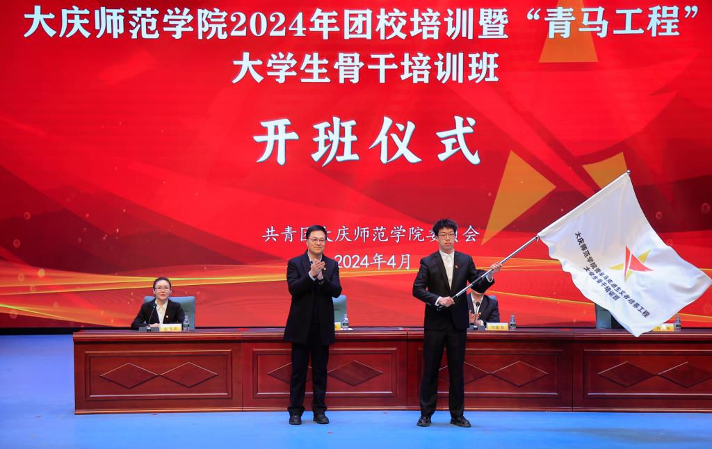 徐晓东为2023年“青马工程”优秀学员颁发荣誉证书,为2024年“青马工程”学员代表授旗,并对学员提出三点希望:要坚定理想信念,勇于担当使命,做民族复兴的奋斗者;要坚持学以致用,务求知行合一,做勇攀高峰的求索者;要坚守理想自信,夯实思想基础,做思想坚定的模范者,努力成长为对党和人民忠诚可靠、堪当时代重任的栋梁之才。