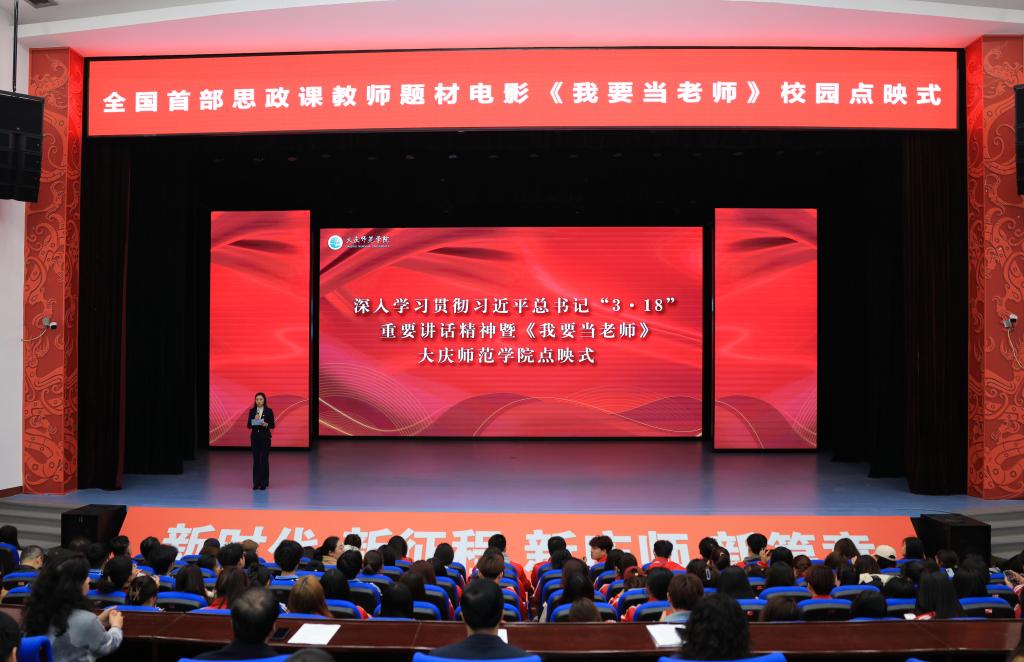 4月10日上午,我国首部思政课教师题材故事片《我要当老师》在学校大学生活动中心点映。党委副书记、工会主席徐晓东,宣传统战部、各二级学院党政领导、马克思主义学院全体教师、辅导员以及学生代表900余人现场观看,同上一堂鲜活生动的思政课。