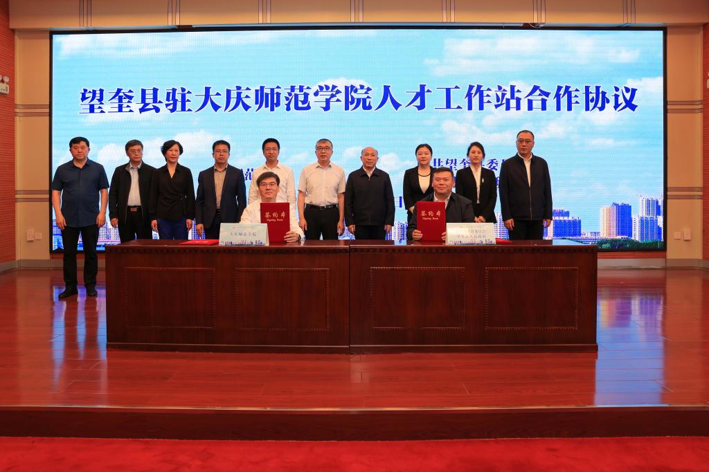 李庆达和我校组织部负责人张象林现场签订了《战略合作框架协议》《人才工作站合作协议》。