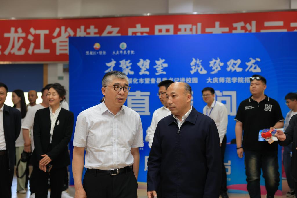 6月4日下午,我校举办“望奎县委书记进校园”现场宣讲推介与招聘活动。望奎县委书记王顶,望奎县委常委、县政府常务副县长邢晶艳,望奎县委常委、组织部部长李庆达,望奎县政府副县长崔跃丽,望奎县政府副县长张才千,以及望奎县人社局、县就业服务中心等部门负责人出席活动。我校党委书记赵科学、校长张平,组织部、办公室、教务处、人事处、科研处等部门负责人及各二级学院相关负责人和180余名2024届毕业生代表参加了活动。