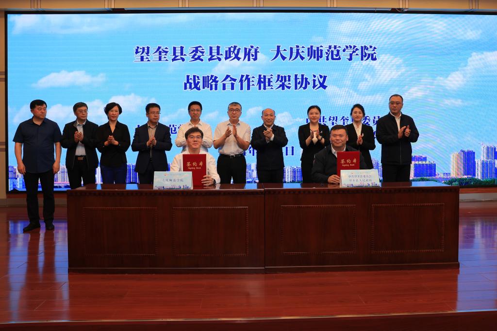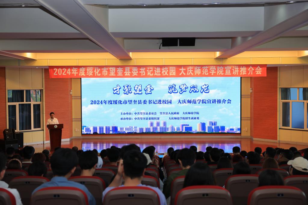 在宣讲推介现场,张平代表校方致辞,并介绍了学校基本情况。他指出,双方开展校县合作,有利于破解当前人才培养供给侧和产业需求侧之间的结构性矛盾,能够将人力资源尽快转化为发展优势,把人才关键变量转化为发展的最大增量;有利于提升高校对区域经济社会发展的贡献力、支撑力,以人才集聚效应促进城市发展动力变革和效率变革,加快产业-科技-人才三链融合,引导毕业生实现更加充分、更高质量就业。今天的签约仪式意味着,望奎县将成为我校校县合作的重要伙伴,今后,我校将聚焦“望奎所需、庆师所能”,发挥特色优势,努力把学校打造成为望奎县事业发展的“思想库”、校企同频共振的“科技库”、校地共融的“人才库”和文化传承的“新高地”。