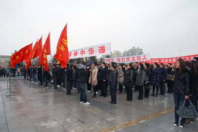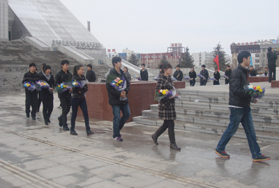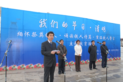 本网讯(张永祥)4月2日上午,我院领导、师生在铁人王进喜纪念馆广场举行了 “缅怀祭奠铁人诵读铁人诗篇重温铁人誓言”主题活动。大庆市文明办主任梁华、我院党委副书记贾文涛、副院长吕晓波、刘恒、纪委书记、工会主席陈少清等领导及教师、学生党员、学生干部1000余人参加了活动。缅怀祭奠活动由副院长刘恒同志主持。