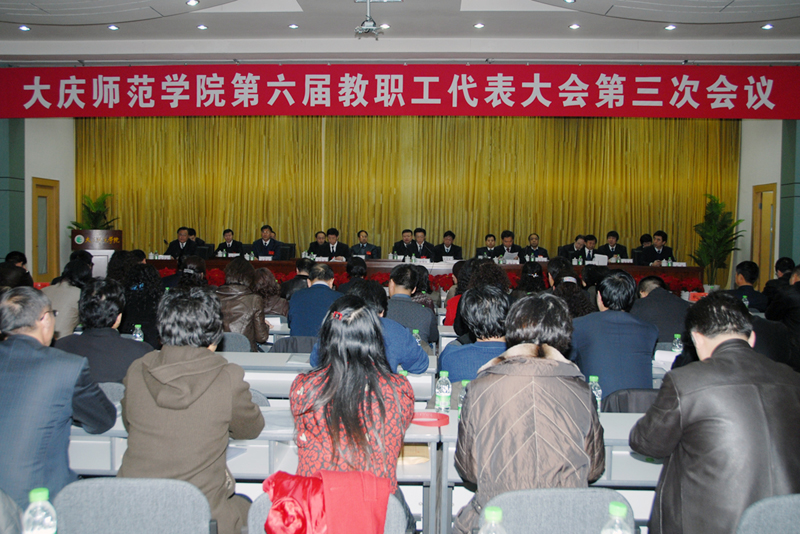 本网讯(张永祥)轻风千缕展百面红旗,春雷一声壮千颗意志。3月31日上午8时,我院第六届教职工代表大会第三次会议在铁人讲堂隆重召开。大庆油田有限责任公司副总经理、管理局副局长、党委常委、学院党委书记齐振林,院长徐克明、党委副书记贾文涛、副院长杨锐锋、吕晓波、刘恒,纪委书记、工会主席陈少清等主席团成员在主席台就座。