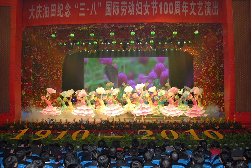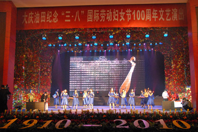 大庆油田党委书记姜万春为文艺演出致辞。他代表油田党委和油田公司向奋战在油田各条战线上的广大女职工及家属,向长期以来为油田发展做出突出贡献的女劳模、女标兵、女同志,向油田各级女工组织、女工干部表示节日的祝贺和亲切的慰问。