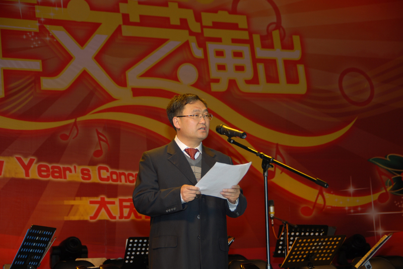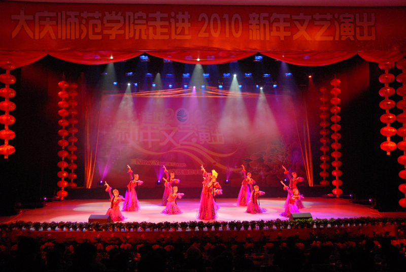 演出前,学院副院长杨锐锋同志主持了开幕式。学院院长徐克明同志向全院师生致新年贺辞。他首先代表校党委和学校,向为学校发展建设做出重要贡献的离退休老同志,向勤奋工作、刻苦钻研的老师们、同志们和同学们致以节日的祝福和诚挚的慰问。他说,即将过去的2009年,是不平凡的一年。在这一年里,我们深入开展学习实践科学发展观活动,更加清晰地认识了本科办学规律。认真贯彻黑龙江省高教强省建设规划,在新的历史起点上全面推进内涵建设,为创建精品、特色地方学院扬帆起航。一年来,学院坚持以科学发展观为统领,以构建和谐校园为追求,以全面提升教育教学质量为根本,以增强社会服务能力为主线,取得了显著成绩。最后,徐校长指出,回首过去,我们为成绩而自豪,但我们更清醒地意识到肩上的历史使命。“师院是我家,发展靠大家。”责任承载着希望,使命蕴涵着动力。在新的一年里,我们将继续秉承“自强不息、臻于至善”的校训,以黑龙江高教强省建设和百年油田创建为契机,以创新为突破口,进一步深化改革,带动学校各项事业全面快速发展,以优异的成绩迎接学校45周年华诞。