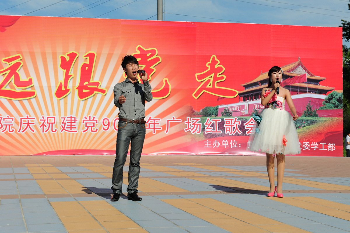 6月8日下午,由校党委宣传部、党委学工部联合主办的“永远跟党走”庆祝建党90周年红歌会在音乐广场举行。
