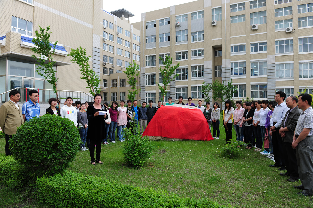 蚕丝吐尽,烛泪成灰秋更稠,春播桃李,秋来硕果满神州。为感念师恩,祝福母校明天更美好,数学科学学院2011届全体毕业生为母校捐赠了校园景观石,并于6月3日在铁人讲堂前举行捐赠仪式。副校长刘恒,数学科学学院党政领导及2011届部分毕业生代表参加了捐赠仪式。
