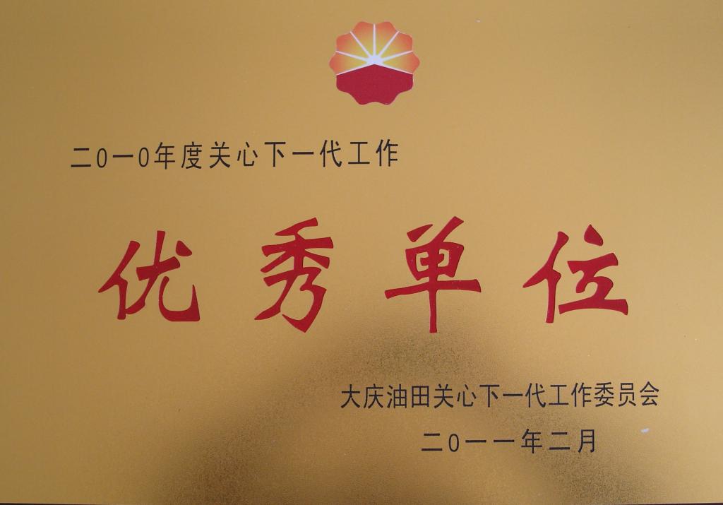 学校关心下一代工作,被油田党委老干部处授予“2010年度关心下一代工作优秀单位”。