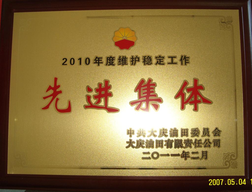 学校维护稳定工作,被油田公司党委、油田公司授予“2010年度维护稳定工作先进单位”,稳定办(信访办)、学生工作处、安全保卫处被授予“2010年度维护稳定工作先进集体”。