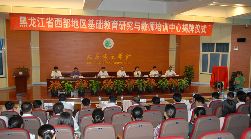省教育厅人事处处长闫滨春首先宣读了黑龙江省教育厅《关于成立黑龙江省西部地区基础教育研究与教师培训中心的批复》文件。随后,孟凡杰副厅长与徐克明院长共同为中心揭牌。