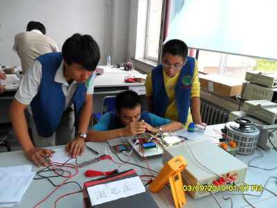 为加强学生动手能力的培养和工程实践能力的训练,物电学院于2006年组建了基础实训室,加强对学生基本技能的训练;2007年建立了实训基地,规划了五个实训室;2009年在实验室紧张的情况下又规划出“大学生创新实训室”,为培养应用型人才搭建了越来越好的综合能力训练平台。