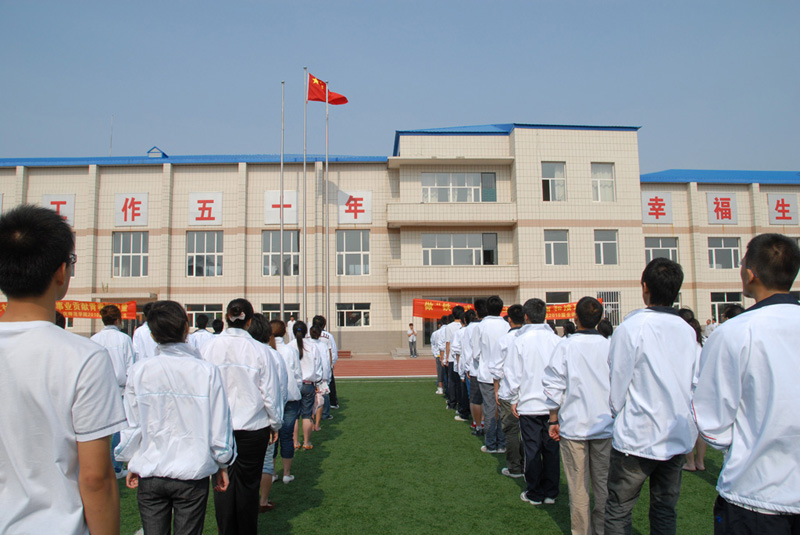 伴随着雄壮的国歌声,五星红旗在全体师生的注目礼中冉冉升起。