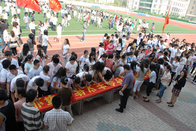 升旗仪式后,“国旗见证你我,我为祖国拼搏”签名活动正式开始,同学们在写着“为中国社会主义伟大事业贡献青春和力量”的条幅上郑重签下自己的名字,许下了庄严的承诺。