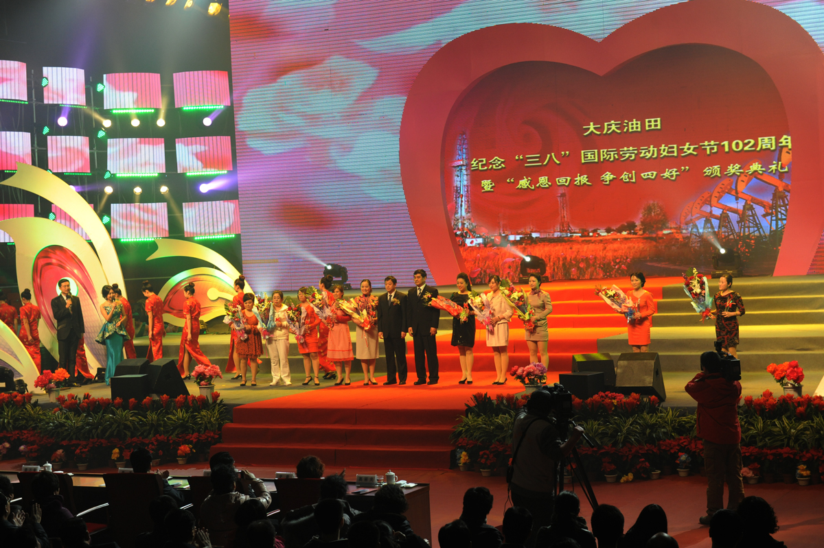 3月8日上午,大庆油田纪念“三八”国际劳动妇女节102周年暨“感恩回报,争做四好”颁奖典礼在油田龙南体育活动中心隆重举行。我校领导、师生30余人参加了演出,选送的舞蹈《花儿为什么这样红》,赢得油田领导和观众的好评。