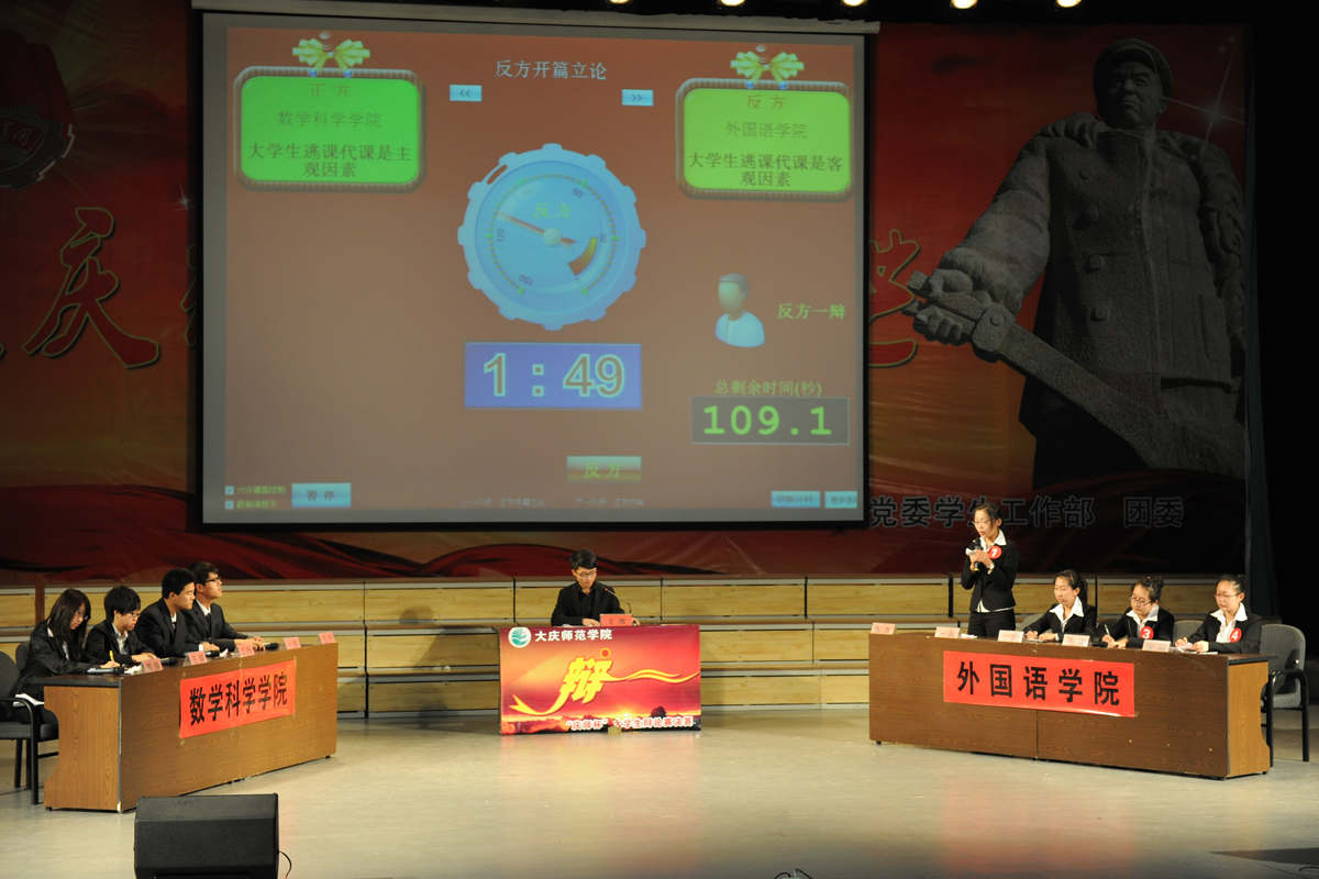 辩论赛围绕“大学生清扫校园利大于弊还是弊大于利”、“大学生逃课代课是主观因素还是客观因素”两个贴近大学生生活的论题,从立论观点阐发开始进行了唇枪舌剑的激烈辩论。选手们思路敏捷、语言犀利、观点鲜明、逻辑清晰,体现了大学生分析问题、明辨是非的能力。