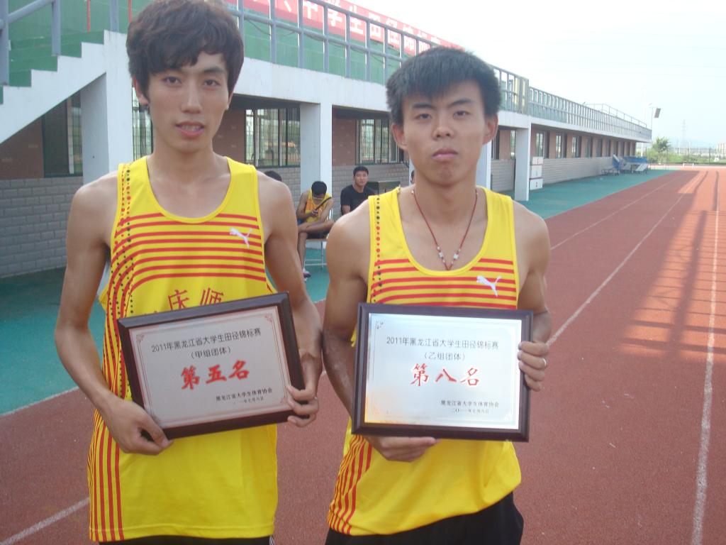 7月8日,2011年黑龙江省大学生田径锦标赛在牡丹江一中圆满落幕,来自全省三十余所高校的代表队同场竞技。我校代表队在本届省大学生田径运动会发挥出色,共参加男子甲、乙两个组别的比赛。在甲组比赛中,学校获得团体总分第五的好成绩,2人摘取单项冠军、并有2人的成绩达到国家2级运动员水平;在乙组比赛中,学校获得团体总分第八名,1人摘取单项冠军,并有10人次成绩达到国家2级运动员水平。
