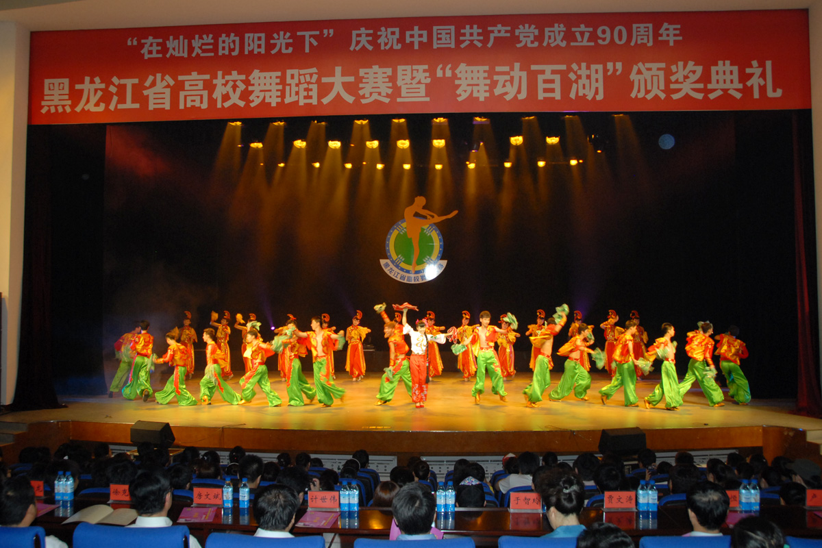舞动青春,舞动梦想。7月15日,由省委宣传部、省委高校工委、省教育厅,团省委、省文联联合举办,省舞蹈家协会承办的“在灿烂的阳光下”庆祝中国共产党成立90周年黑龙江省高校舞蹈大赛暨“舞动百湖”颁奖礼在我校举行。