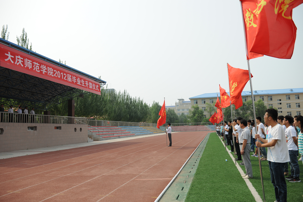 为增强毕业生爱党、爱国意识,坚定共产主义信念,树立人生远大目标,争做“铁人式”的社会主义建设者和接班人,6月25日,在体育场举行2012届毕业生升旗仪式。学校领导徐克明、杨锐锋、刘恒、陈少清、张国军、乔志和出席了升旗仪式,仪式由副校长刘恒主持。