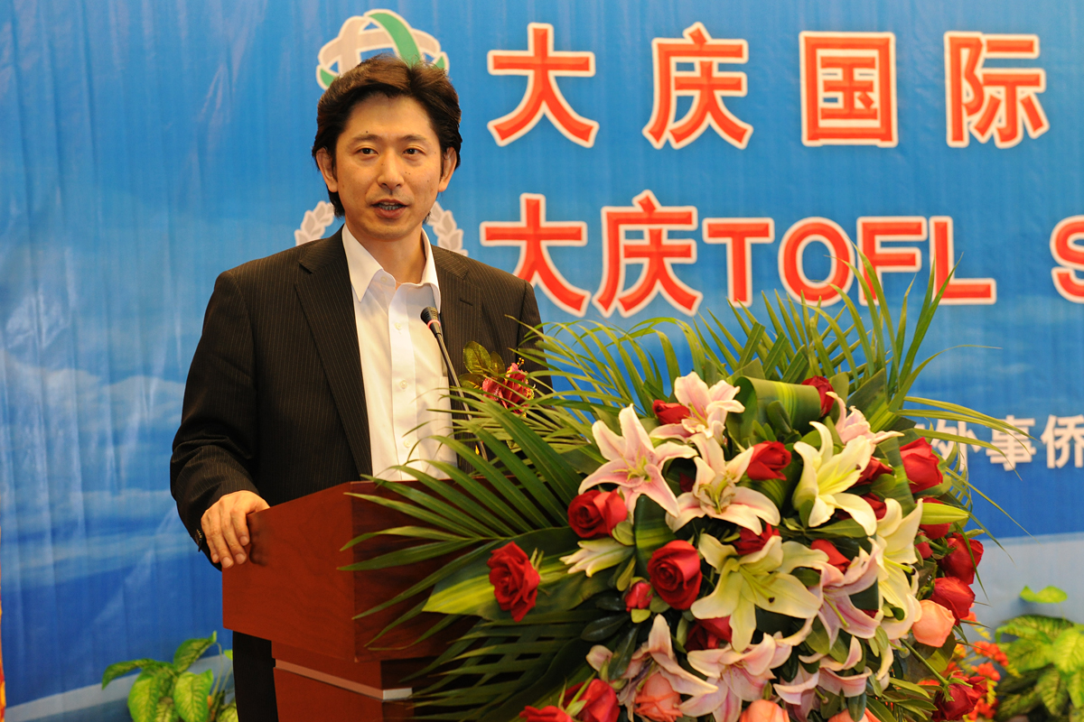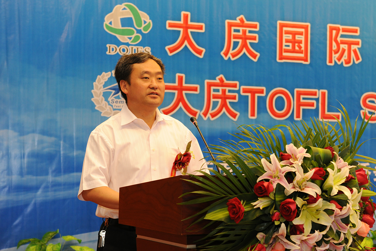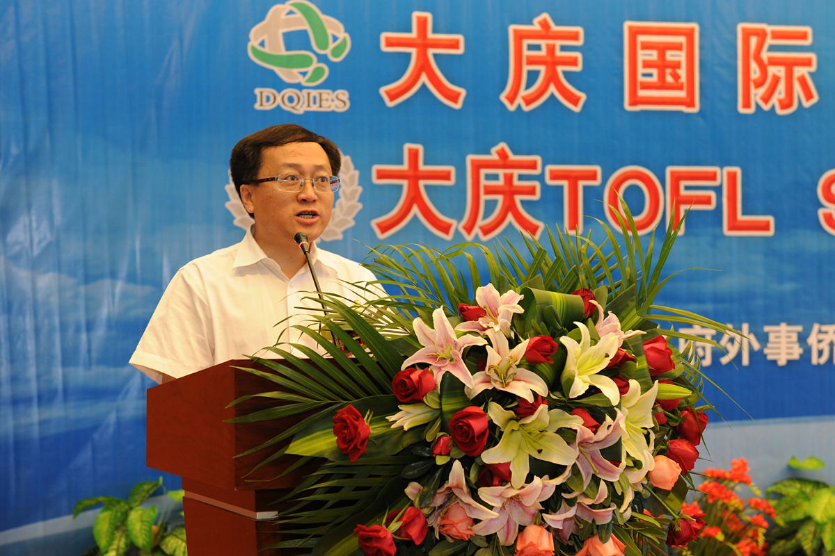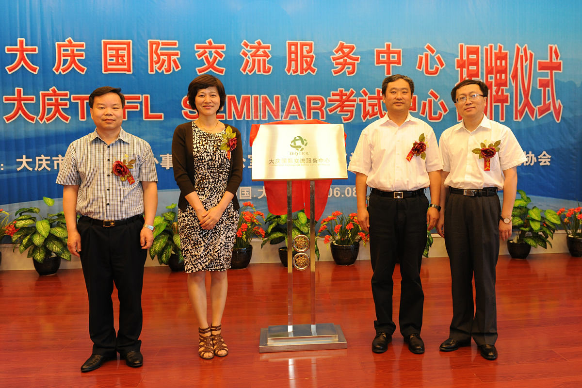 大庆市人民政府外事侨务办公室主任韩松岭首先致辞,他说,大庆国际交流服务中心的成立,是在新形势下为满足我市广大市民和企事业单位与国际交轨的实际需求,促进我市在教育、文化、人才、经贸等领域国际交流合作的一次尝试和创举。中心将为政府部门和企事业单位、大中小学校联系国际交流合作项目;邀请海外专家学者到我市讲学、进行合作研究以及技术培训;组织公务员,企业管理人员和技术人员到海外对口单位进行学习培训;通过引进TOFL考试中心,为大中学学生提供出国留学、出国就业等信息咨询服务。通过中外各方的精诚团结和密切协作,把中心打造成国际交流的平台,人才引进的平台,生源输出的平台,项目合作的平台,对外宣传的平台。