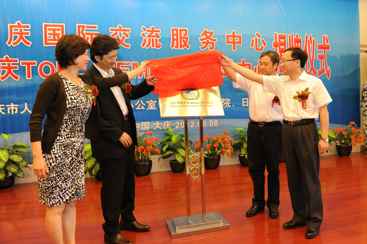 为把中国的优秀民族文化和大庆独特的石油文化散播到世界,同时把国外优质的文化资源引进大庆,为政府、企事业提供信息服务,为学生出国深造搭建平台,6月8日,“大庆国际交流服务中心” “大庆TOFL SEMINAR考试中心”揭牌仪式在我校博雅讲堂隆重举行。