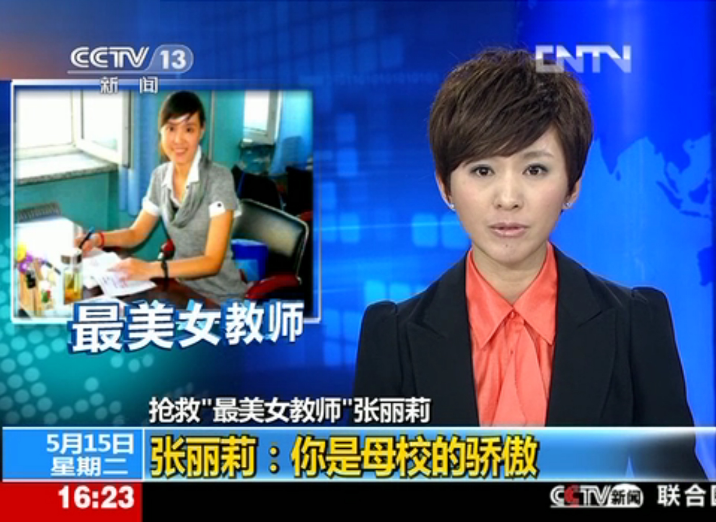 2012年5月15日16:23,中央电视台新闻直播间播出《张丽莉:你是母校的骄傲》,报道了张丽莉在我校学习期间学习生活情况和感人事迹。