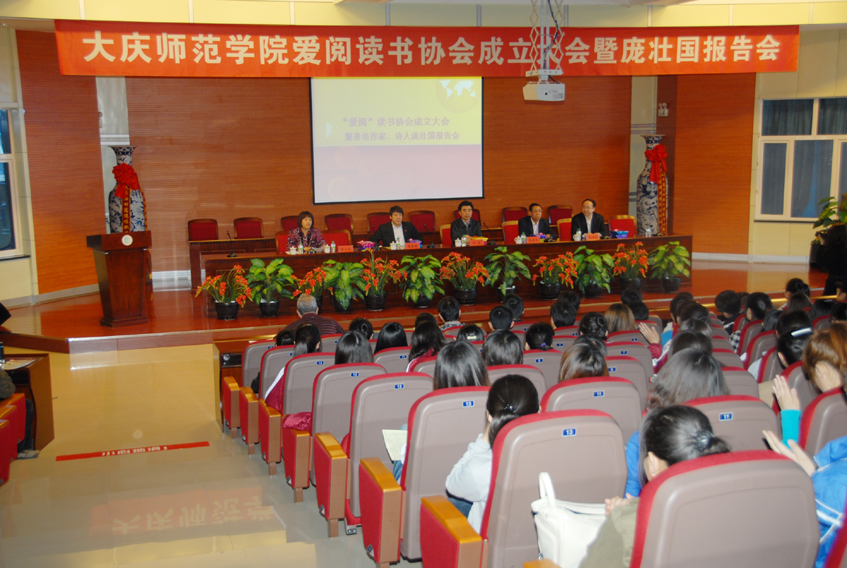 成立仪式结束后,与会领导与同学们一同聆听了黑龙江省著名作家、诗人、大庆市作家协会主席庞壮国作的《纪实与奉命》专题报告。报告中,他以通俗晓畅、幽默风趣的语言与大家畅谈了创作生涯的经历与体会,使现场观众深受启发,博得了阵阵掌声。