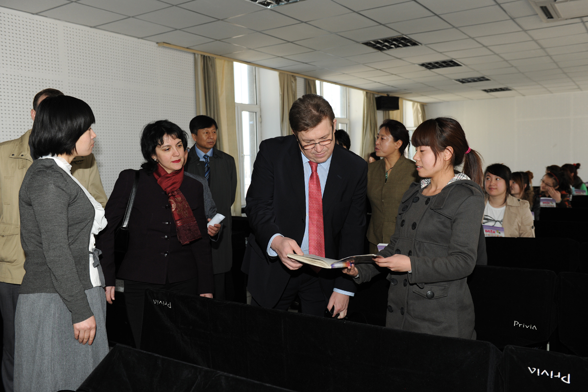 在为期三天的访问中,代表团先后考察了大庆外国语学校、大庆市城市规划馆,对大庆的发展建设给予了高度评价。在副校长杨锐锋的陪同下,代表团参观了我校化学化工学院、教育科学学院、油陶艺术陈列馆、学生餐厅、留学生公寓等教学设施,并表示将尽快安排学生来我校学习和交流。